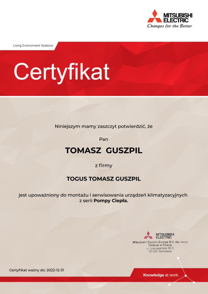 Aktualnie firma TOGUS posiada akredytację na montaż i serwis pomp ciepła Panasonic, Mitsubishi oraz Viessmann